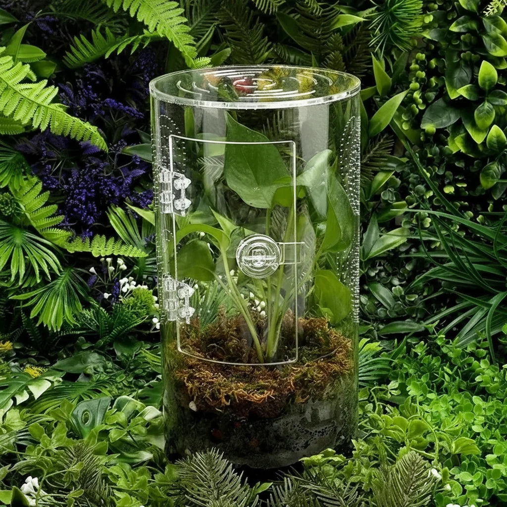 Our habitat features a thoughtfully designed interior with green plants and moss, mimicking a natural ecosystem. This encourages your pet's instinctual climbing, hiding, and exploring behaviors, keeping them happy and active.
